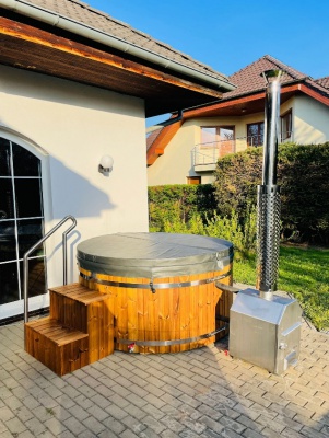 Nasza balia z piecem zewnętrznym to idealne rozwiązanie na każdą porę roku. Świetnie sprawdza się zarówno w ogrodzie, jak i na tarasie, tworząc doskonałe miejsce do relaksu w gronie rodziny czy przyjaciół.