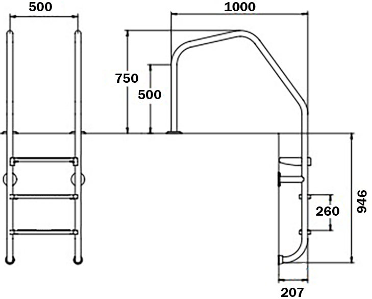 Drabinka z poręczami Flexinox Overflow Special przeznaczona jest do basenów zagłębionych z szerokim obrzeżem. Wyposażona jest w trzy stopnie z antypoślizgowymi nakładkami z tworzywa sztucznego. Dzięki gumowym zaślepkom elementy mocujące nie naruszają hydroizolacji niecki basenu. Wykonana ze stali nierdzewnej AISI 316L, odpornej na korozję, promieniowanie UV i działanie odczynników chemicznych. Maksymalne obciążenie drabinki wynosi 150 kg. Elementy montażowe są dołączone do zestawu.