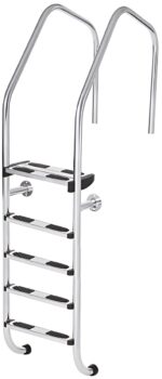 Drabinka z poręczami Flexinox Overflow Special przeznaczona jest do basenów zagłębionych z szerokim obrzeżem. Wyposażona jest w pięć stopni z antypoślizgowymi nakładkami z tworzywa sztucznego. Dzięki gumowym zaślepkom elementy mocujące nie naruszają hydroizolacji niecki basenu. Wykonana ze stali nierdzewnej AISI 316L, odpornej na korozję, promieniowanie UV i działanie odczynników chemicznych. Maksymalne obciążenie drabinki wynosi 150 kg. Elementy montażowe są dołączone do zestawu.