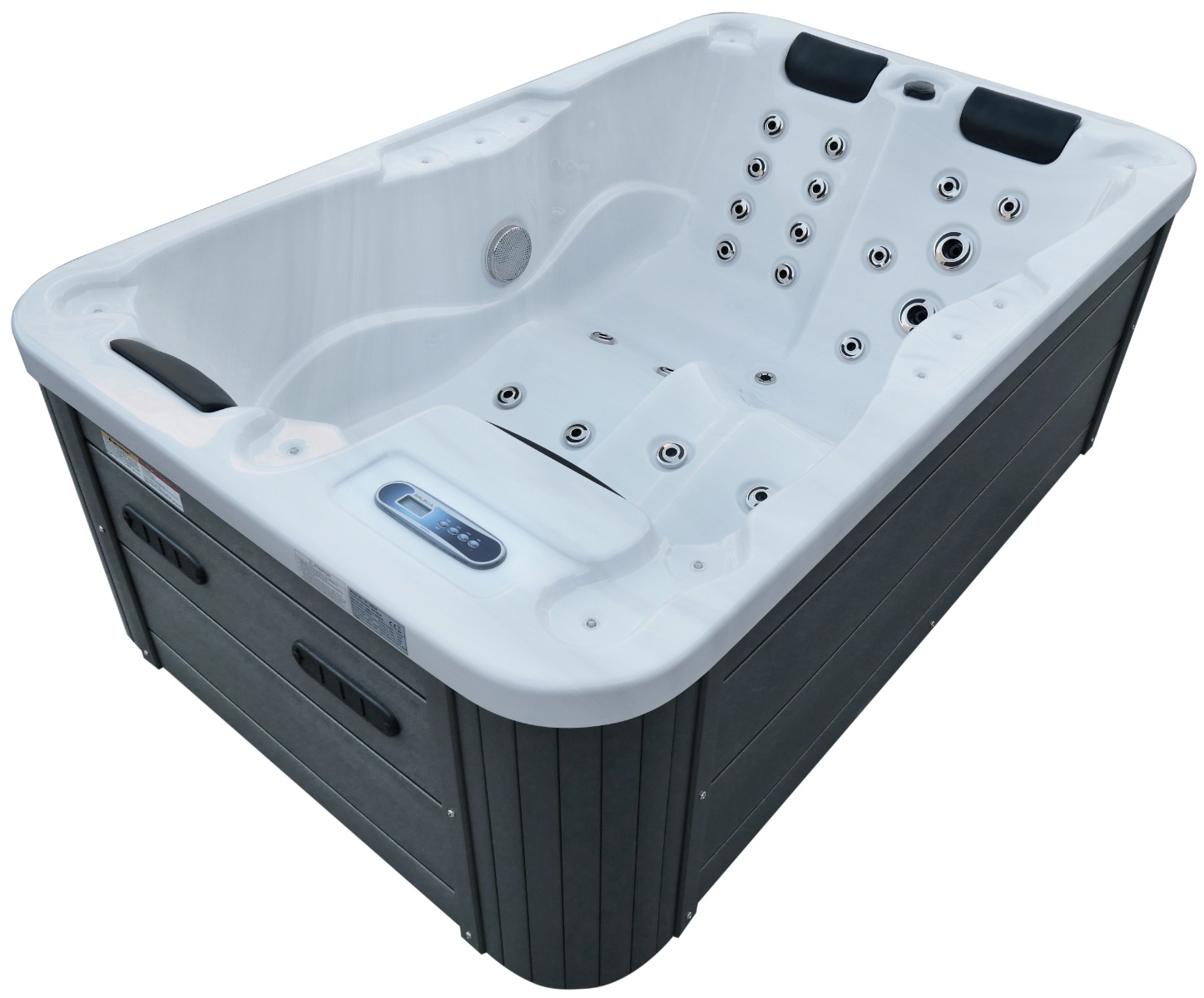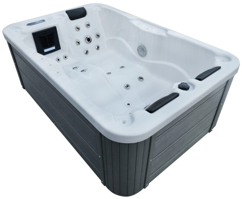 Aquajoy Alicante to kompaktowe, stylowe jacuzzi klasy premium, zaprojektowane z myślą o komfortowym relaksie w kameralnej przestrzeni. Model oferuje 2 wygodne miejsca siedzące oraz 1 ergonomiczne miejsce półleżące, dzięki czemu doskonale sprawdzi się na tarasie, w ogrodzie, w apartamentach oraz mniejszych strefach SPA.