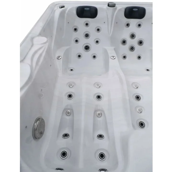 Jacuzzi wyposażono w 34 dysze hydromasażowe, 8 powietrznych oraz 4 cyrkulacyjne, które zapewniają skuteczny i równomierny masaż całego ciała. Dodatkowe funkcje, takie jak masaż stóp, automatyczne uwalnianie powietrza oraz niezależny system filtracji, gwarantują pełen komfort użytkowania.