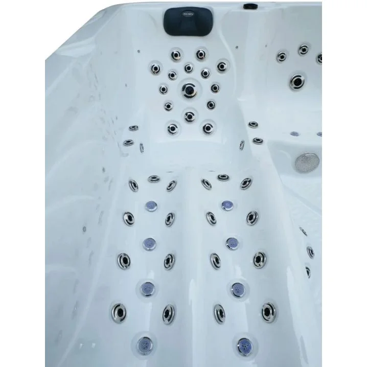 Komfort użytkowania podnoszą również 3 ergonomiczne podgłówki, efektowne wewnętrzne oświetlenie LED (38 punktów), ozonator oraz cichy i energooszczędny system cyrkulacji. Solidna rama ze stali nierdzewnej gwarantuje stabilność i długą żywotność konstrukcji.