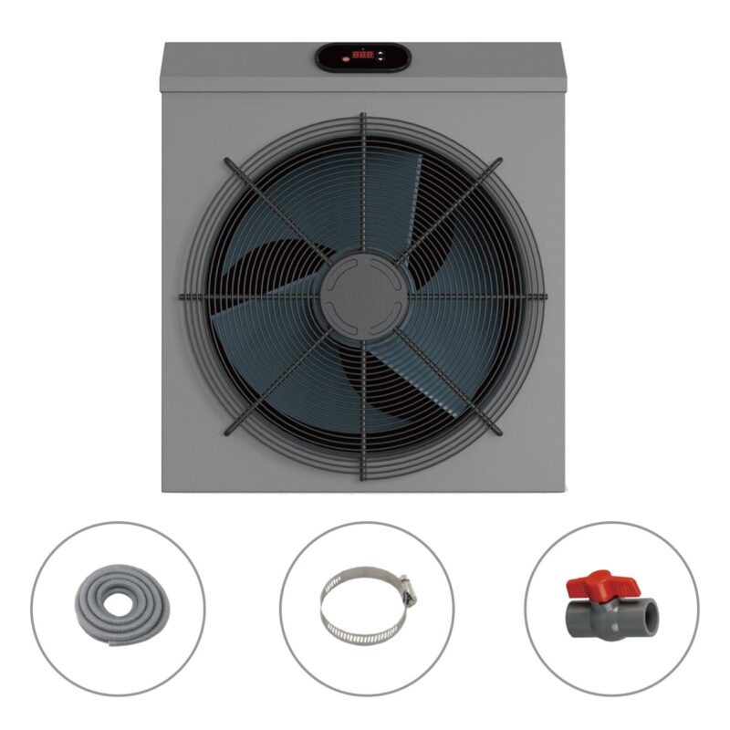 Ultrakompaktowy rozmiar: Mimo dużej mocy grzewczej, pompa zajmuje niewiele miejsca, a jej stylowy wygląd sprawia, że idealnie komponuje się z nowoczesną architekturą ogrodu.